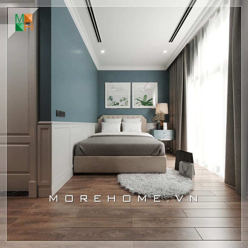 Màu trắng trên tường sơn mang lại vẻ đẹp tinh tế và sang trọng cho phòng ngủ hiện đại.